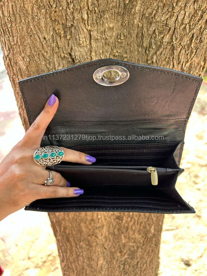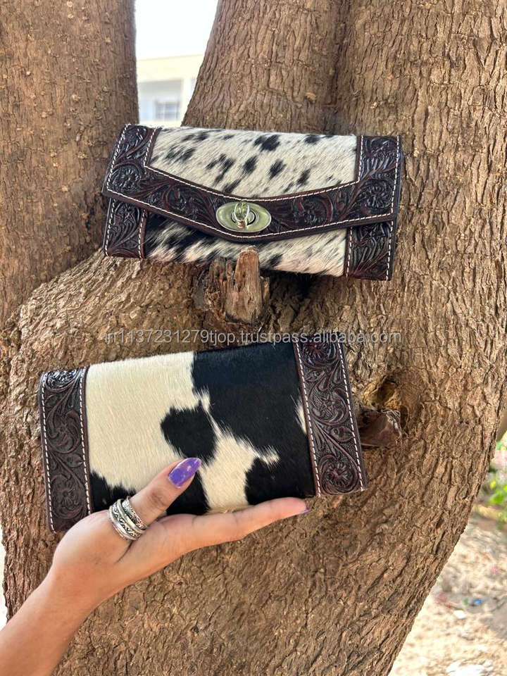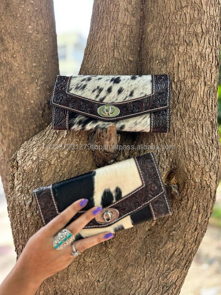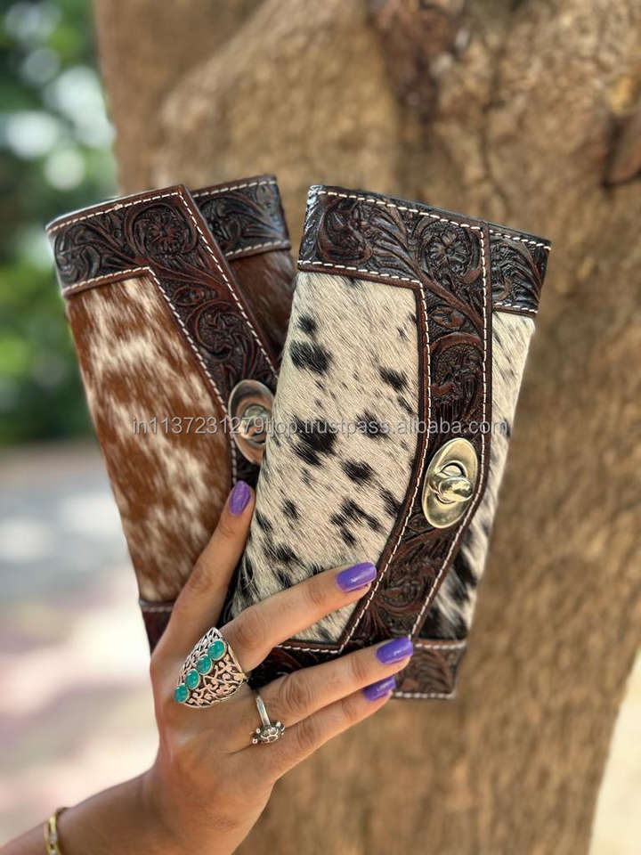 กระเป๋าคลัทช์หนังขนเครื่องมือสีดำสำหรับผู้หญิงมีสไตล์ไม่เหมือนใครกระเป๋าสตางค์หนังสไตล์ตะวันตกขายดี