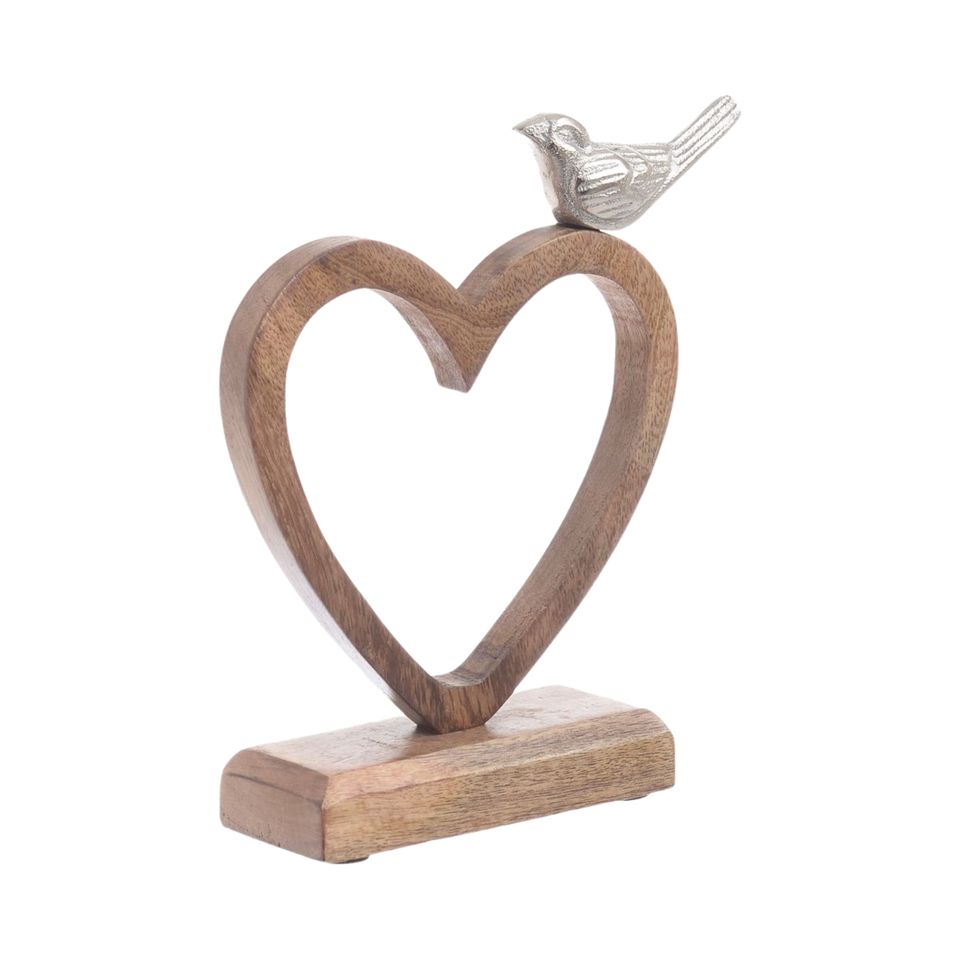 Unique Style Heart Shaped Wooden With Metal Bird Christmas Decoration Ornament For Shelf Decor Industrial Decor For Office Desk