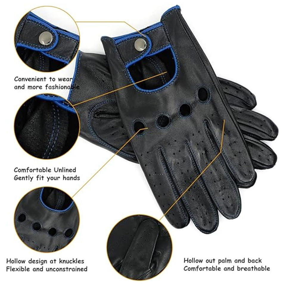 ถุงมือขับรถหนังแกะคุณภาพสูง ทนทาน ดีไซน์โดดเด่น พร้อมสายรัดข้อมือปรับได้ ทนความร้อนและใช้งานได้หลากหลาย