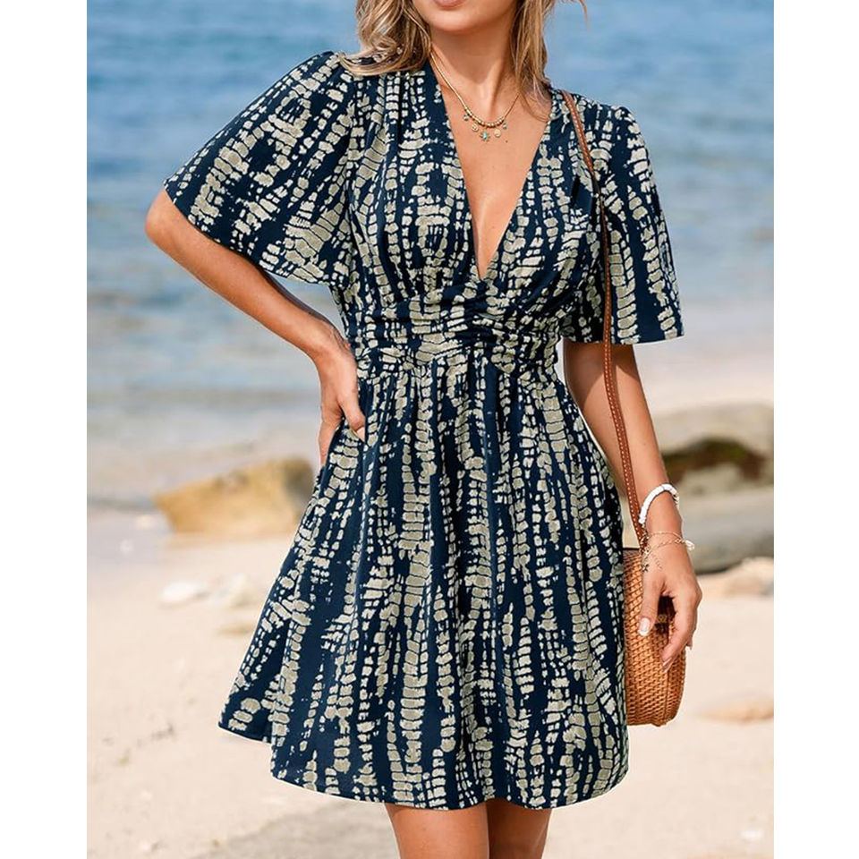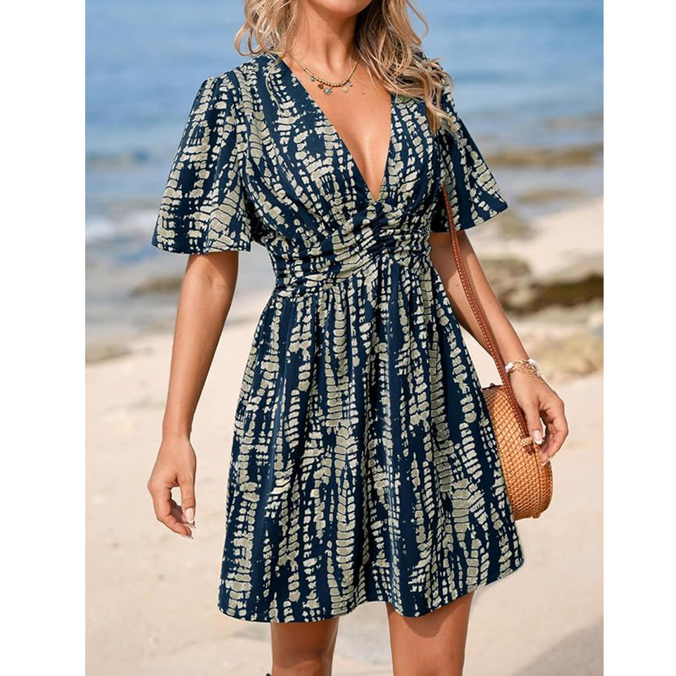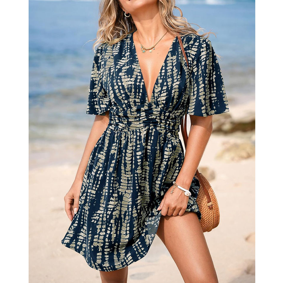 ชุดเดรสเดินชายหาดของผู้หญิงยาวสั้นสไตล์ไม่เหมือนใครเดรสทางการแขนสั้นทำจากผ้าฝ้ายเนื้อนุ่มพรีเมียมป้องกันการหดตัวสำหรับฤดูร้อน