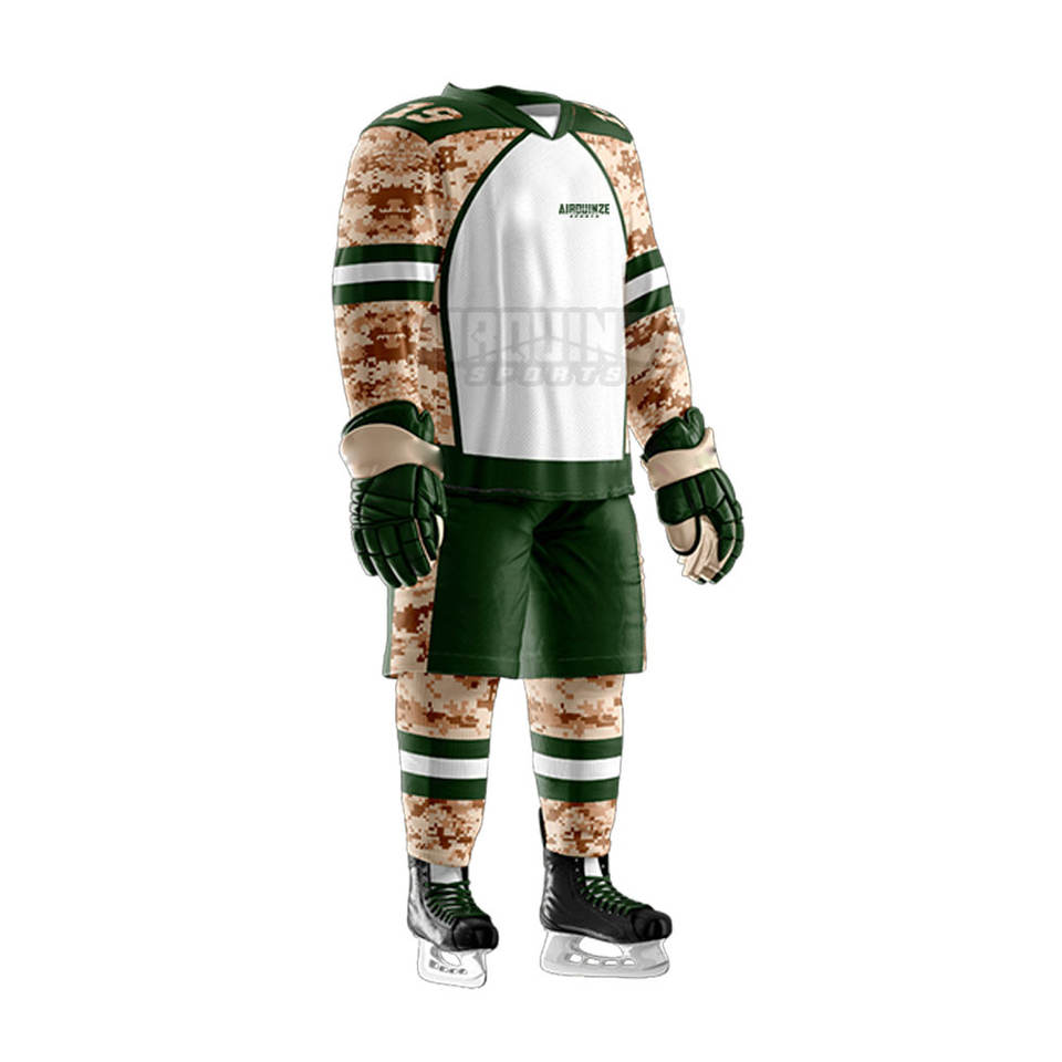 ชุดกีฬาสไตล์พิมพ์ซับลิเมชันชุดยูนิฟอร์มฮ็อกกี้น้ำแข็งชุดปรับแต่งสีได้ตามต้องการ