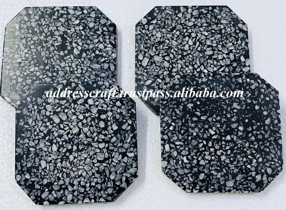 สไตล์ที่ไม่ซ้ํากัน Terrazzo ทรงสี่เหลี่ยมสีขาวและสีดําจานรองแก้วชุดวันเกิดอาหารเช้าตกแต่งเครื่องครัวมือสอง