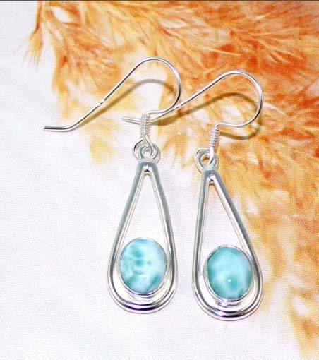 ชุดกรอบ Larimar 8x10มม. มีสไตล์ที่ไม่เหมือนใครต่างหูลูกแพร์เครื่องประดับต่างหูเงิน925แบบวินเทจเครื่องประดับที่มีชื่อเสียงสำหรับวันเกิด