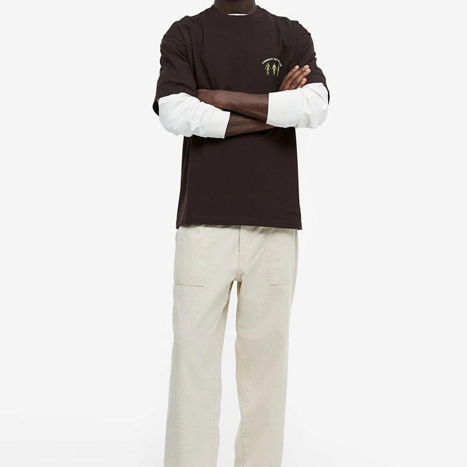 เสื้อยืดผู้ชายทรงหลวม ดีไซน์เก๋ไม่ซ้ำใคร เนื้อผ้าคอตตอนหนานุ่ม แขนสั้น รับสกรีนโลโก้ตามสั่ง ปรับแต่งได้