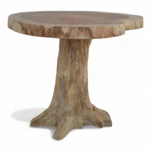 รากไม้สักพร้อมแผ่นบนโต๊ะอาหารทรงกลม
