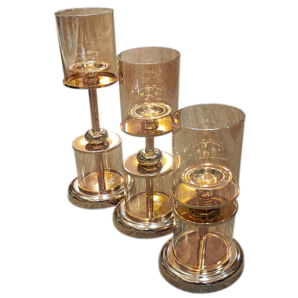 เชิงเทียนอลูมิเนียมรูปตัวทีเชิงเทียนสีทองพร้อมเชิงเทียนแก้วควันเชิงเทียนเชิงเทียน