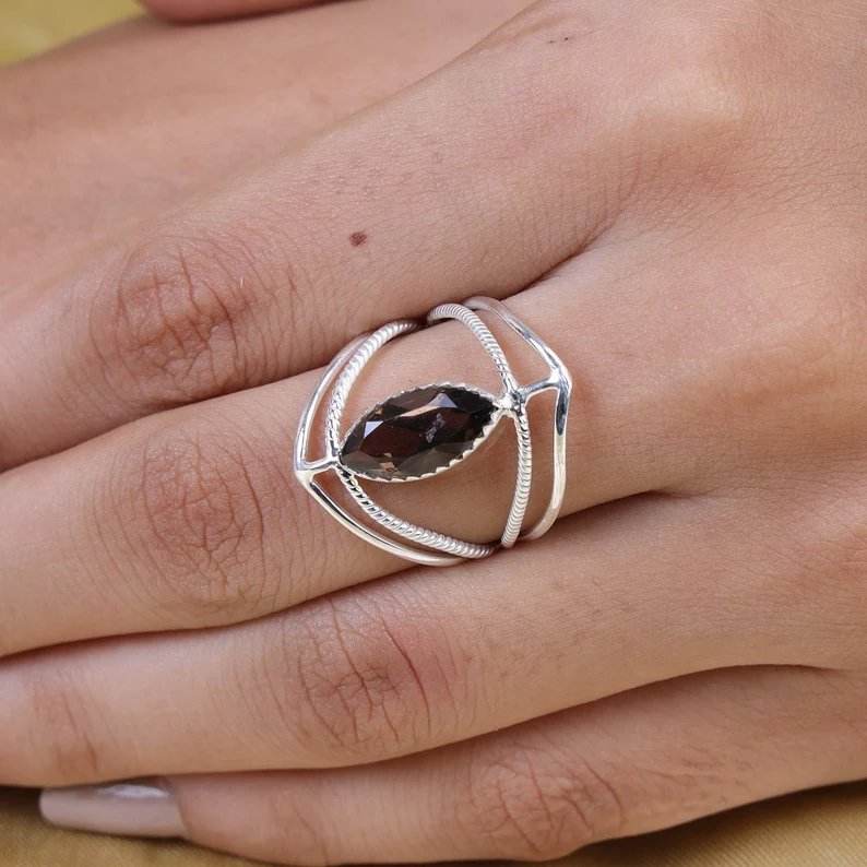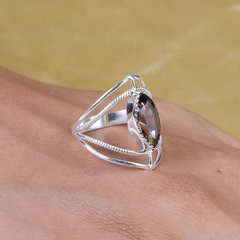อัญมณีควอทซ์สโมคกี้ทันสมัยที่เป็นเอกลักษณ์ของผู้หญิงอัญมณี925เงินประดับเพชรไข่มุกหลักหินไข่มุกแหวนมุก