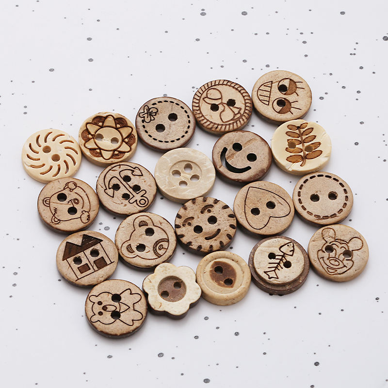 ชุดกระดุมสองตาและสี่ตาที่ไม่เหมือนใครกระดุมเปลือกมะพร้าวขัดเงาเป็นมิตรกับสิ่งแวดล้อม