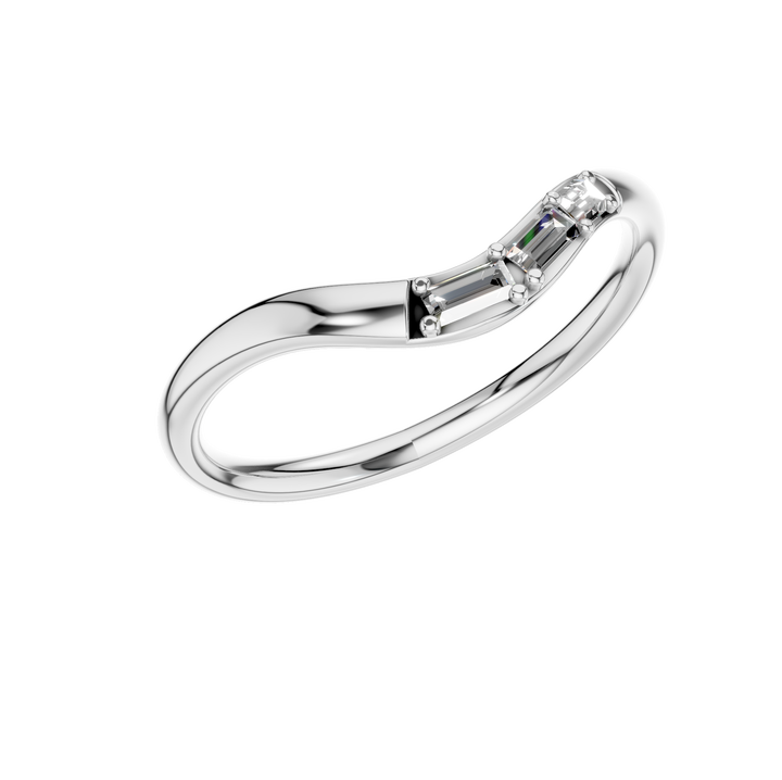 ที่ไม่ซ้ำกันรูปตัววีโรเดียมชุบบาแกตต์ตัด Moissanite วงแต่งงาน925เงินสเตอร์ลิงกับง่ามการตั้งค่าหมั้นอินเดีย