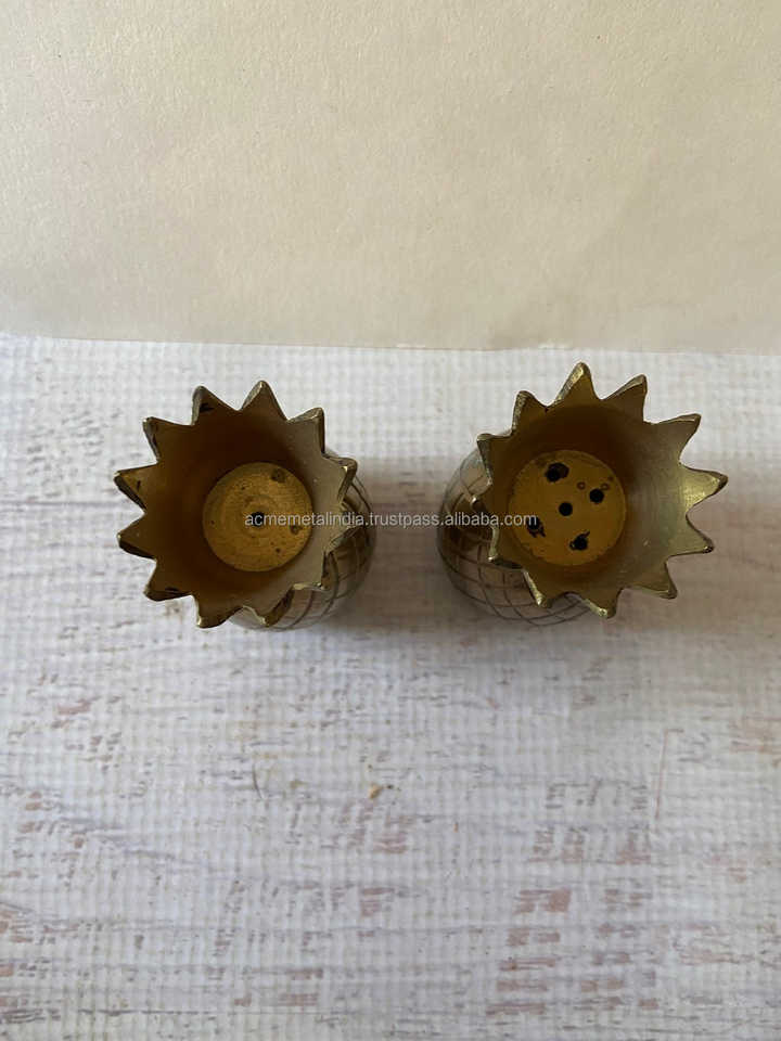 ชุดเครื่องปั่นเกลือและพริกไทยทองเหลืองสไตล์วินเทจไม่เหมือนใครพร้อมของตกแต่งโต๊ะที่หรูหราและเครื่องเทศ