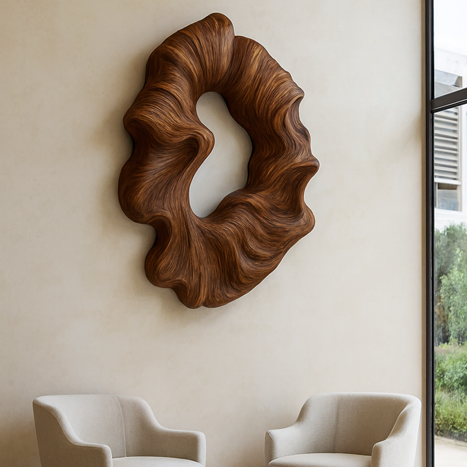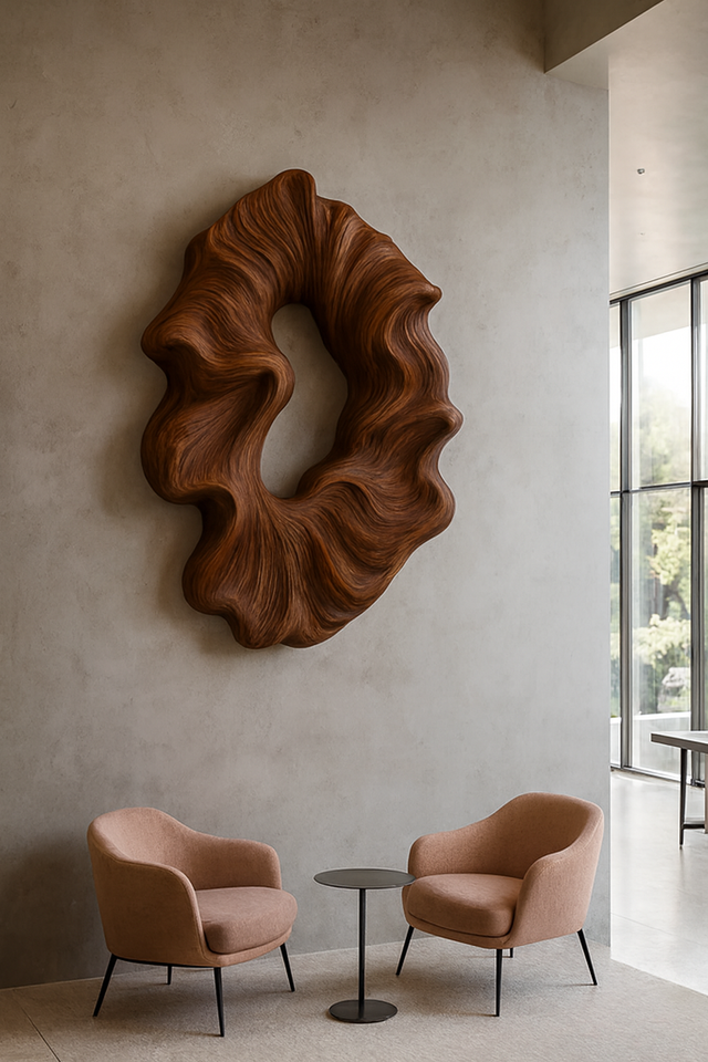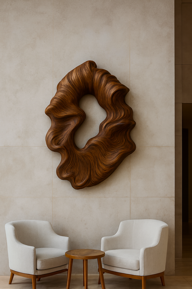 งานประติมากรรมไม้ติดผนังแบบออร์แกนิก งานฝีมือไม้ประดับผนังสำหรับตกแต่งห้องนั่งเล่น