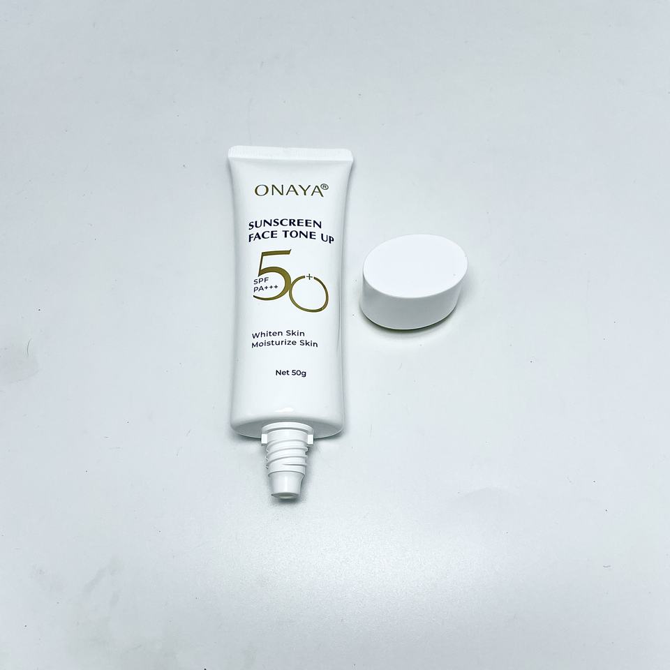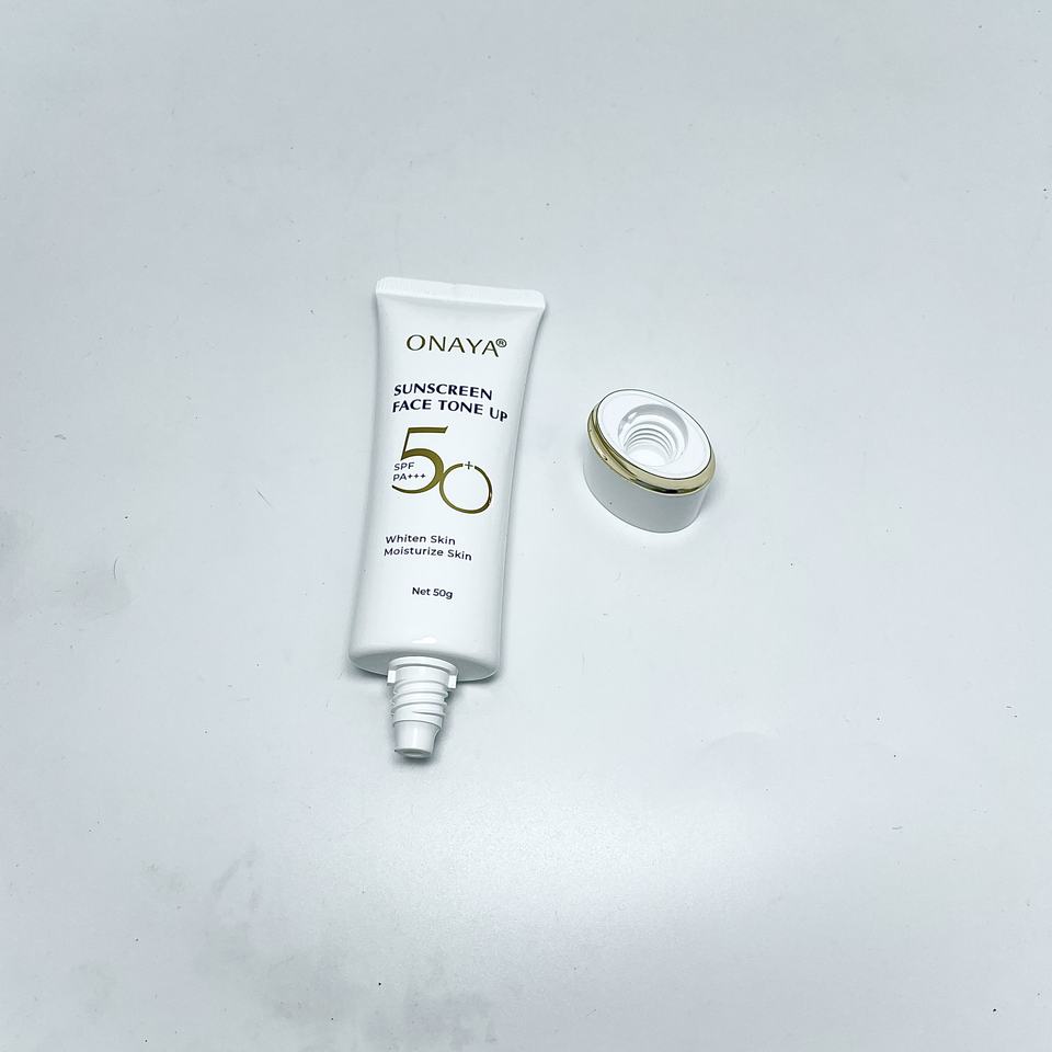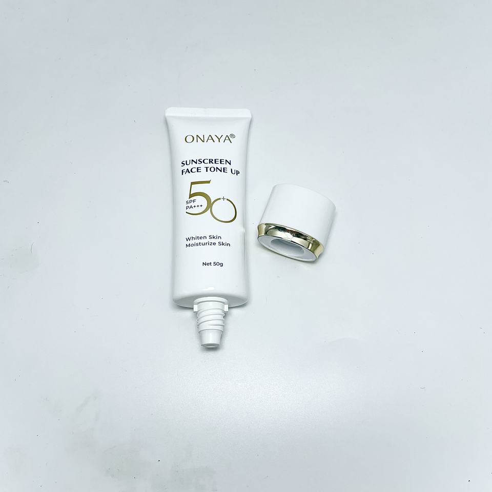 บรรจุภัณฑ์หลอดพลาสติก PE สีขาวแบบพิเศษสำหรับเครื่องสำอาง ครีมกันแดด โลชั่น พร้อมฝาเกลียวชุบทอง ปั๊มร้อน พิมพ์ลายไหม