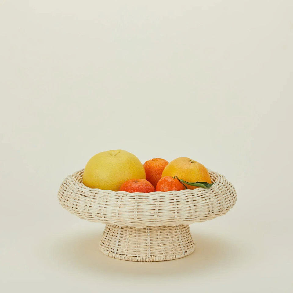 ถาดวางของทรงสูงสีขาวแบบพิเศษ ขอบหนา ผลิตจากหวาย สำหรับใส่ผลไม้ ชามเสิร์ฟแบบยกสูง ชามหวายตกแต่งกลางโต๊ะ รับผลิตแบบ OEM ODM ขายส่ง