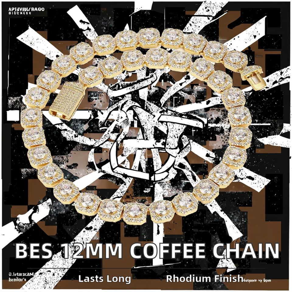 สร้อยคอแฟชั่นฮิปฮอปทรงเมล็ดกาแฟทองเหลืองขนาด 12 มม. ประดับเพชรซิคอนชุบทองสำหรับผู้หญิง ดีไซน์ไม่ซ้ำใคร เหมาะสำหรับวันครบรอบ