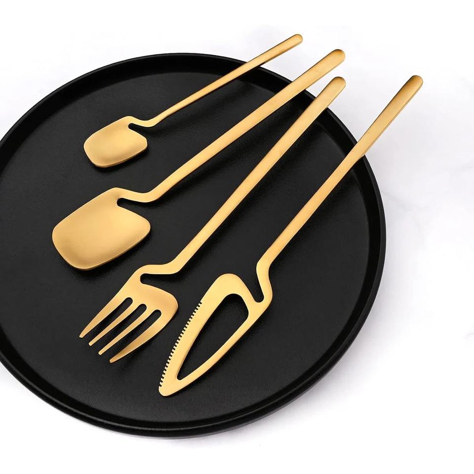 ชุดช้อนส้อมไม้ดีไซน์เรขาคณิตทันสมัย หรูหรา ผิวด้าน สำหรับงานแต่งงาน รูปทรงสี่เหลี่ยม ดีไซน์สร้างสรรค์