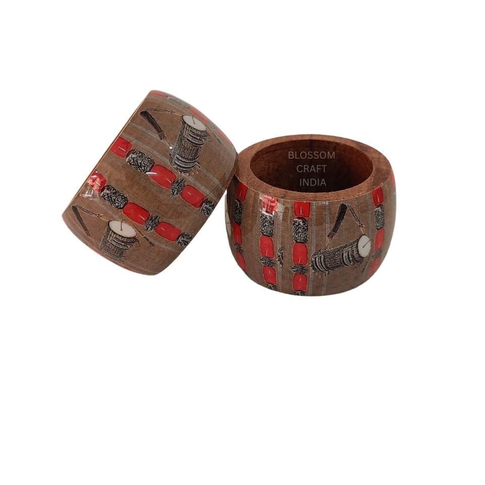 แหวนรองผ้าเช็ดปากไม้ดีไซน์เฉพาะตัว พร้อมลวดลายเคลือบสีสันสดใส งานแฮนด์เมดเพ้นท์ตกแต่งโต๊ะอาหาร อุปกรณ์ตกแต่งโต๊ะอาหารระดับพรีเมียม