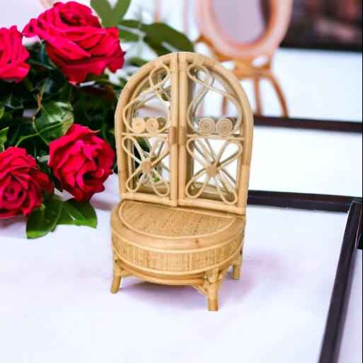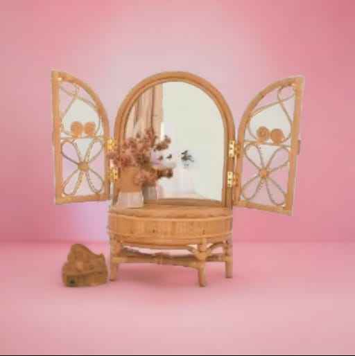 โต๊ะแต่งหน้าตุ๊กตาหวายขนาดเล็กสำหรับเด็กผู้หญิงของเล่นทำมือน่ารักทำด้วยมือ
