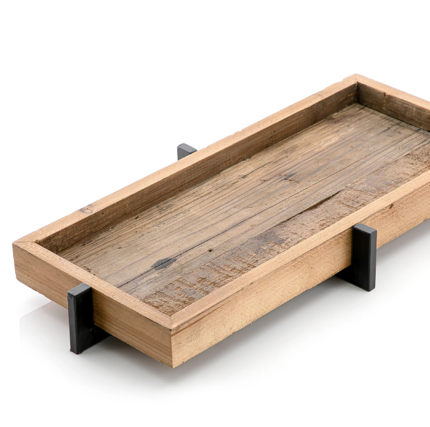 ถาดไม้สี่เหลี่ยมหรูหราไม่เหมือนใครพร้อมฐานโลหะทนทานสำหรับบ้านร้านอาหารงานฝีมือในบ้านส่งออกขั้นต่ำ100ชิ้น