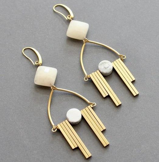 ต่างหูโลหะที่ทำจากช่างฝีมือไม่เหมือนใครมีรายละเอียดที่หุ้มด้วยลวดและองค์ประกอบเสน่ห์ทำด้วยมือสำหรับงานศิลปะแฟชั่น