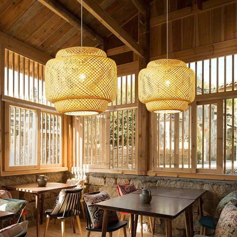 โคมไฟไม้ไผ่ที่เป็นเอกลักษณ์ดีไซน์จี้ทำมือสไตล์เป็นมิตรต่อสิ่งแวดล้อมสร้างแสงอบอุ่นสำหรับบ้านรีสอร์ทร้านอาหารและการตกแต่งภายใน
