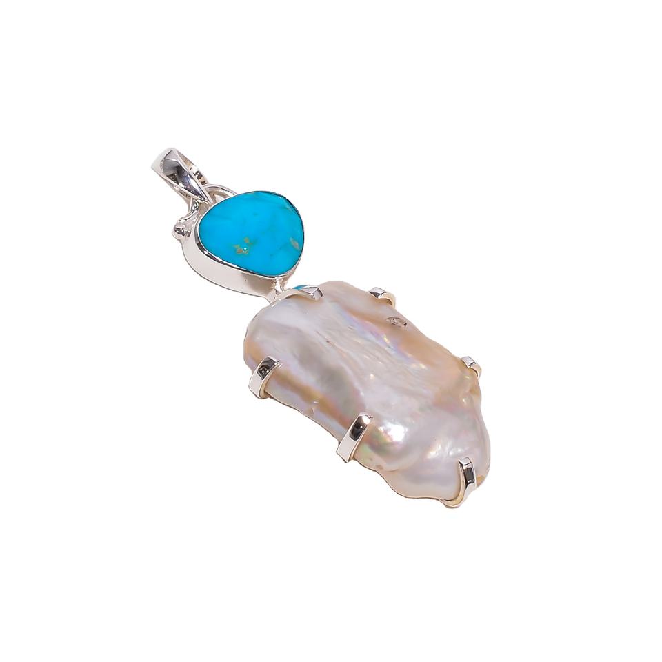 สร้อยคอประดับมุกสไตล์บาโรกที่ทันสมัยสำหรับผู้หญิงจี้เงินสเตอร์ลิงตัดด้วยดอกกุหลาบสีอะริโซน่าสีเทอร์ควอยซ์