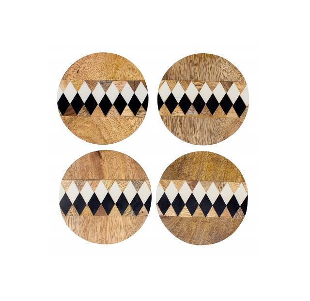ชุดถาดรองแก้วไม้ทำด้วยมือมี4ดีไซน์ที่ไม่เหมือนใครพร้อมของโบราณแผ่นรองจานขนาดและแผ่นรองจาน