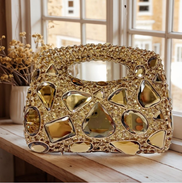 กระเป๋าทรงกลมลายทองคำเปลวแบบพิเศษ พร้อมลวดลายดอกไม้และงานกระจกเงา งานศิลปะ จำหน่ายในราคาขายส่ง