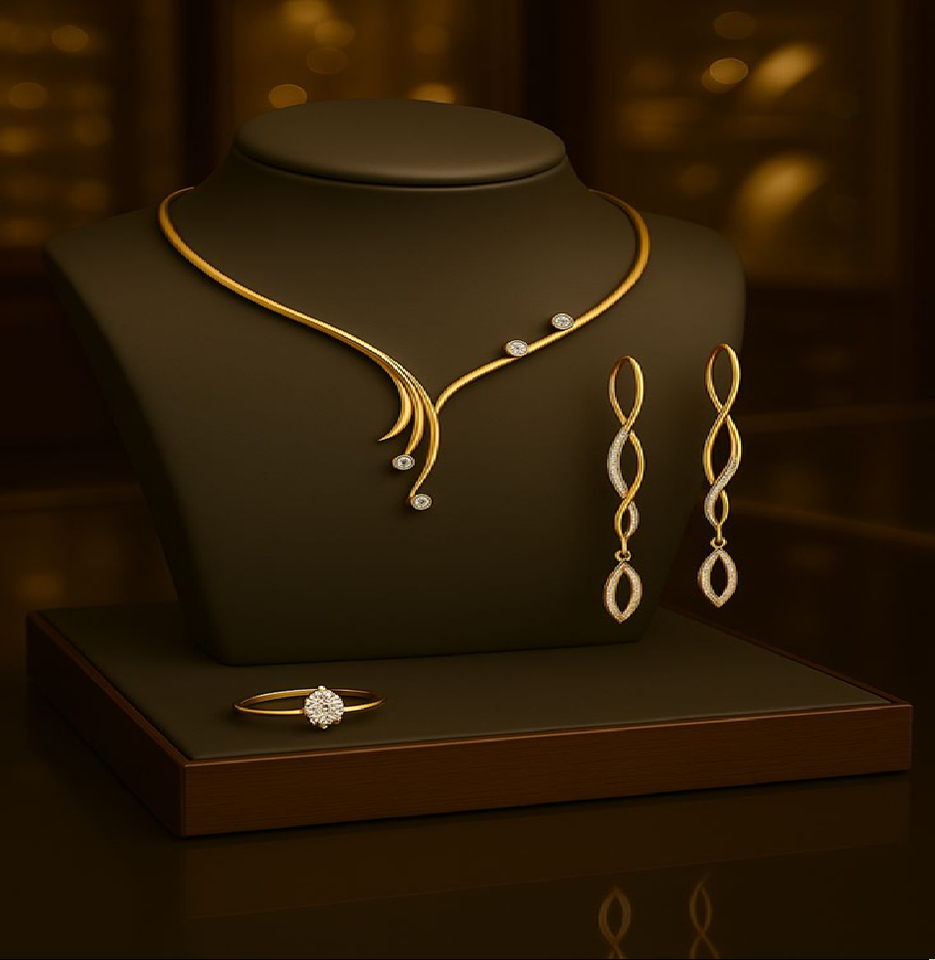 Unique gold necklace with dangling textured spheres and shimmering diamond-cut finishes. Available at wholesale prices.