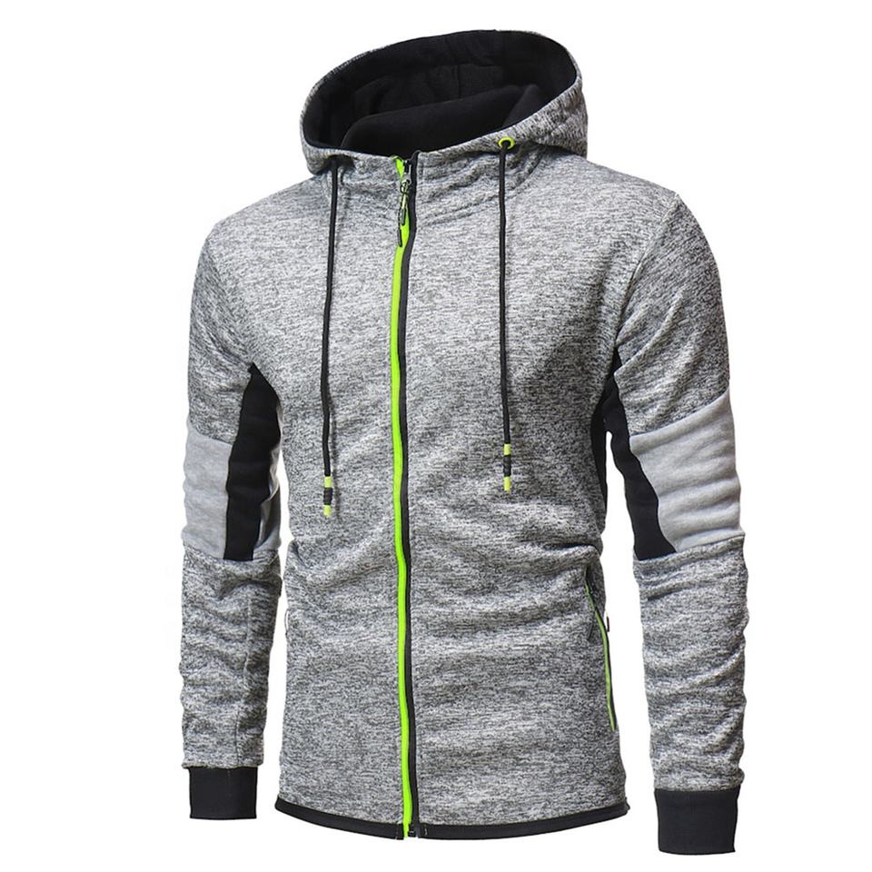 เสื้อฮู้ดแขนยาวผ้าฟลีซสำหรับผู้ชายทรงสลิมฟิตมีซิปสีเทาไม่ซ้ำใครสำหรับผู้ชาย