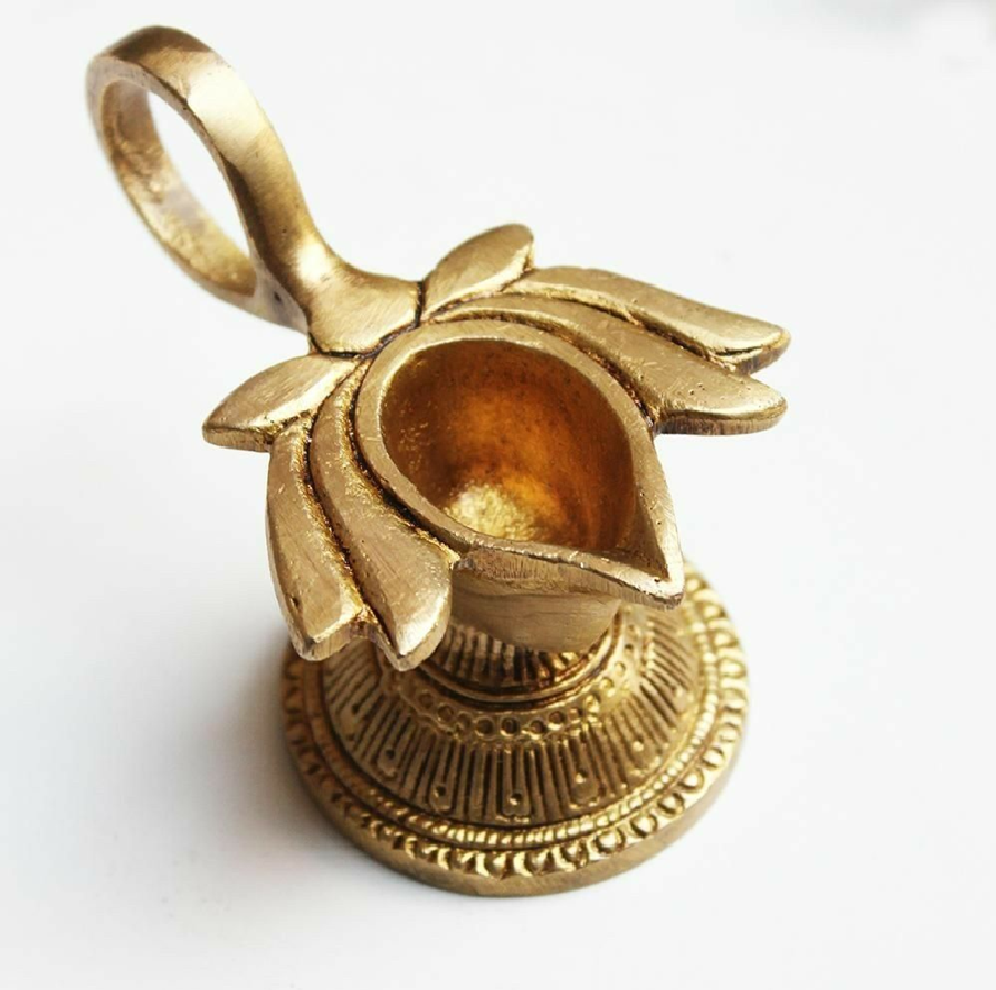 ตะเกียงจโยติทองเหลืองประดับคริสตัล