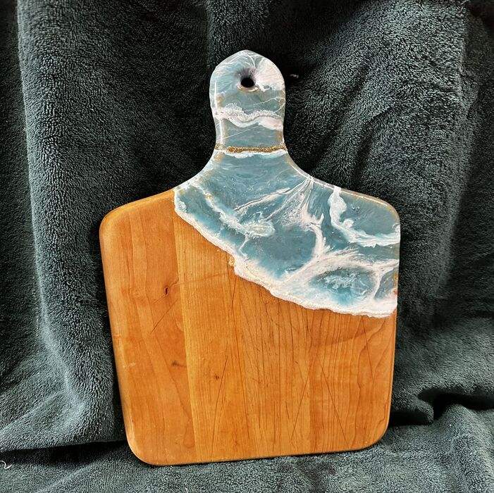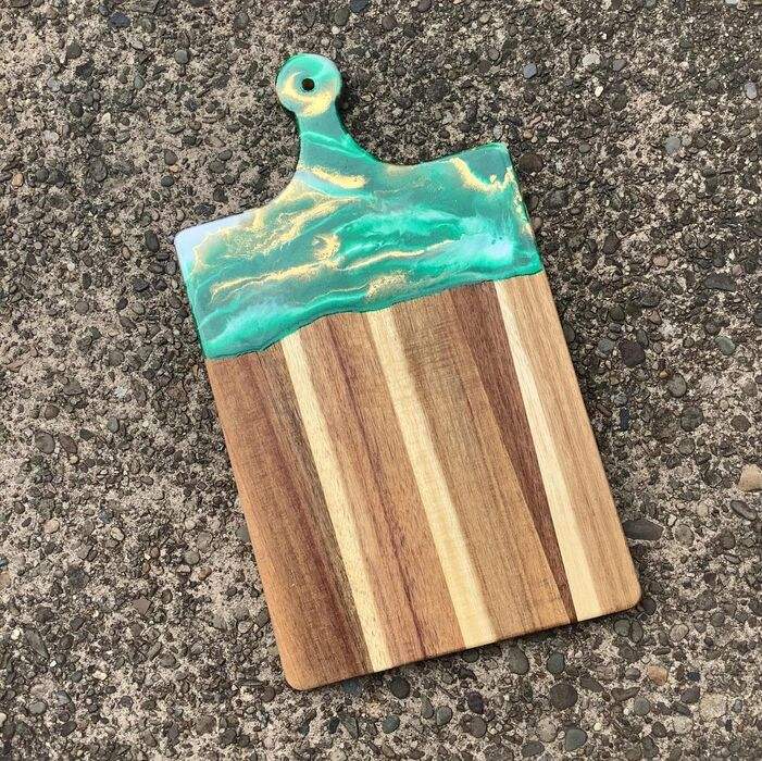Unique resin chopping board designed with crystal blue river finish ideal for serving snacks breakfast and light meals