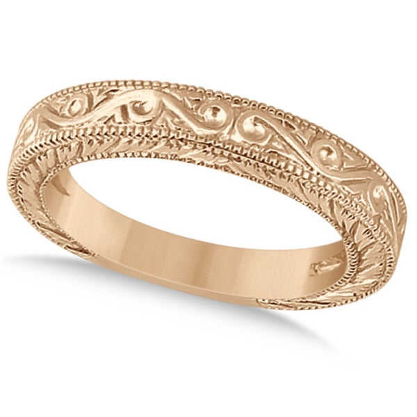 แหวนแต่งงานลายฉลุสำหรับผู้หญิง ดีไซน์โดดเด่น ขอบมิลเกรน ทองคำชมพู 18K ชุดเครื่องประดับชั้นดี
