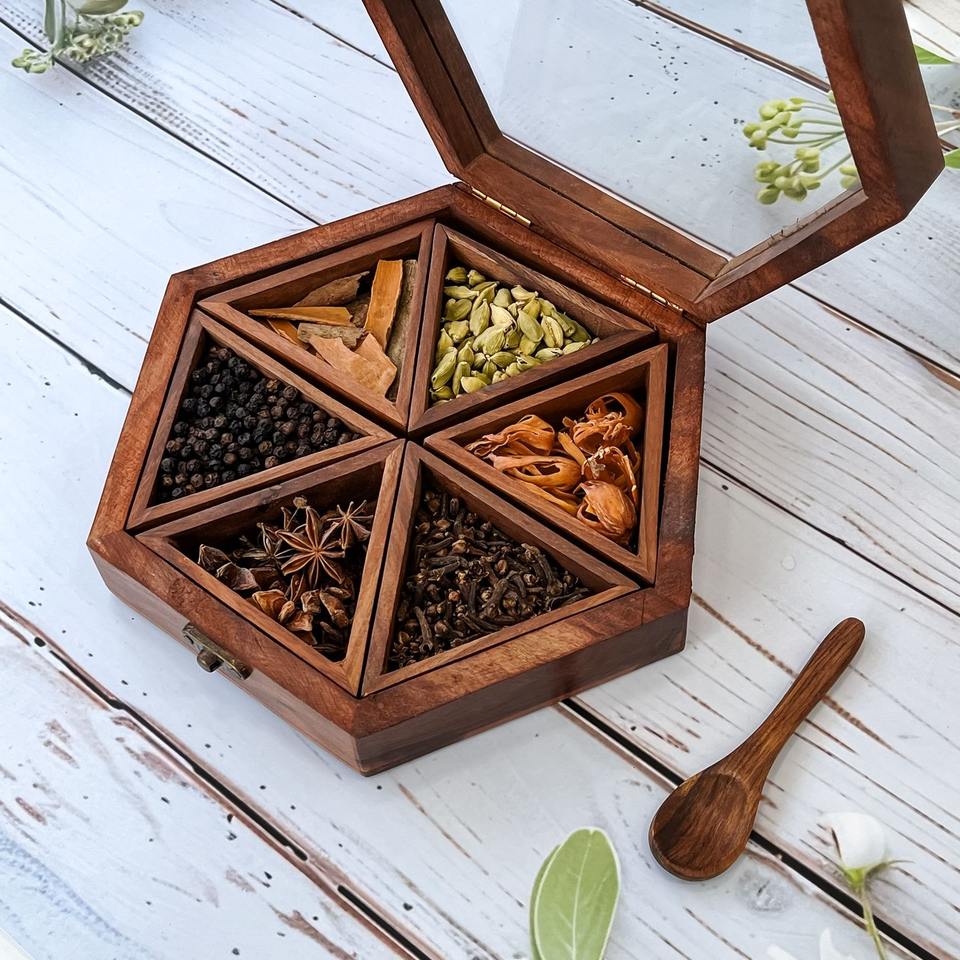 กล่องไม้เก็บเครื่องเทศแบบมีเอกลักษณ์กล่องมาซาลาแบบประหยัดขนาดโลโก้ตามสั่ง