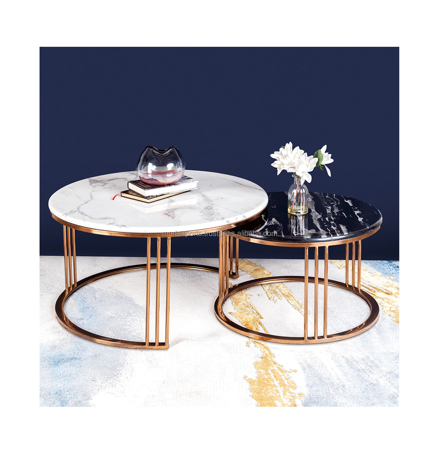โต๊ะกาแฟหินอ่อนทรงกลมสไตล์โมเดิร์นเฟอร์นิเจอร์บ้านนอร์ดิกพร้อมคุณสมบัติการตกแต่งขาเหล็กสำหรับห้องนั่งเล่น