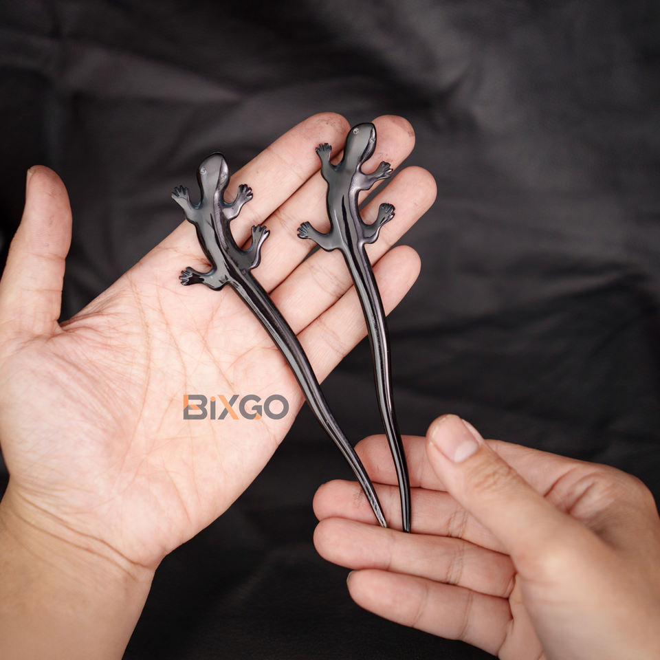 ปิ่นโตรูปเขาควายธรรมชาติสำหรับผู้หญิงรูปทรงตุ๊กแกทำมือสำหรับผมมวยและผมยาวของขวัญที่สมบูรณ์แบบ