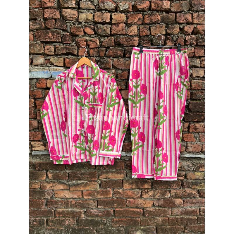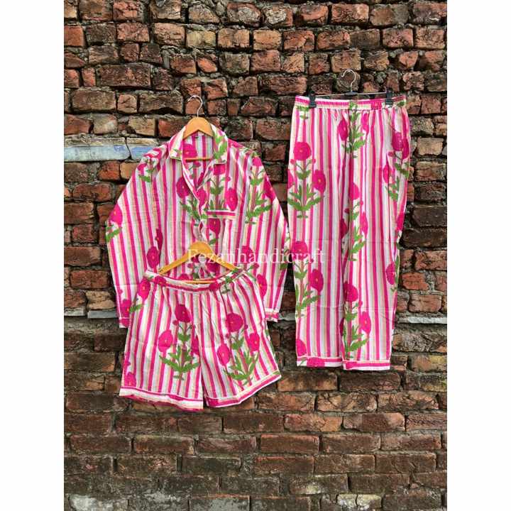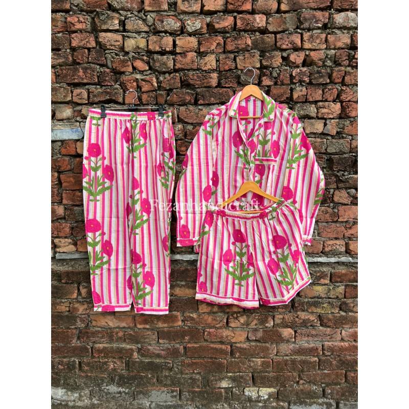 ชุดนอน3ชิ้นลายดอกไม้สำหรับชายและหญิงชุดนอนเพื่อนเจ้าสาวทำจากผ้าฝ้าย100% ใส่ได้ทั้งชายและหญิง