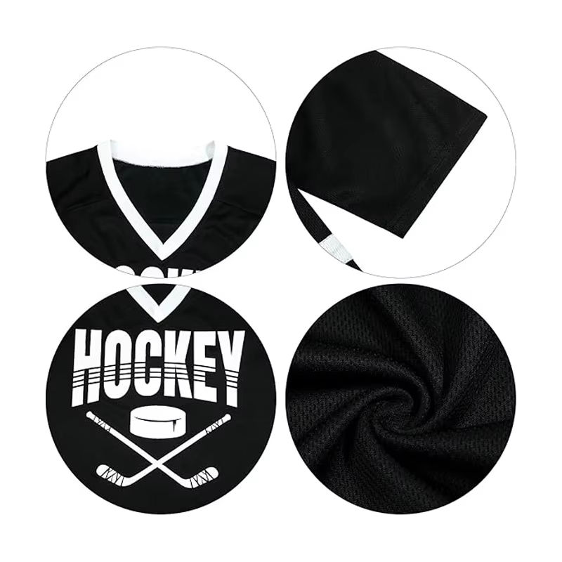 เสื้อและกางเกงฮอกกี้น้ำแข็งแบบยูนิเซ็กซ์ โพลีเอสเตอร์ 100% แห้งเร็ว ระบายอากาศได้ดี ชุดกีฬาแบบซับลิเมชั่น