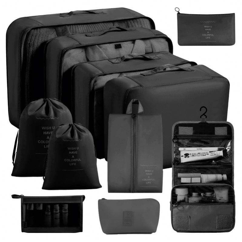 ชุดกระเป๋าจัดระเบียบสำหรับเดินทางแบบยูนิเซ็กซ์ 11 ชิ้น ลายตัวอักษร น้ำหนักเบา ปิดด้วยซิป สำหรับจัดเก็บสัมภาระและเครื่องสำอาง ทำจากโพลีเอสเตอร์