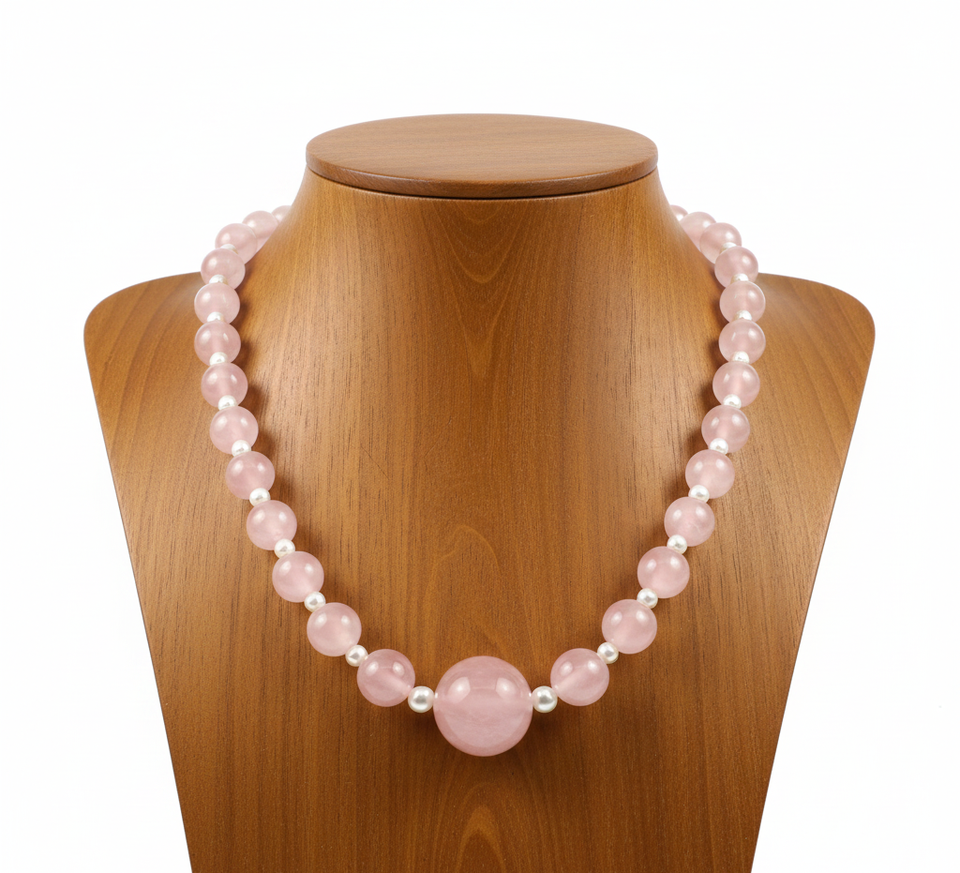สร้อยคอหินโรสควอตซ์ 18 นิ้ว แบบยูนิเซ็กซ์ เงินแท้ 925 ชุบทอง 14K ดีไซน์เรขาคณิตถักมือ ของขวัญสุดอินเทรนด์ เครื่องประดับแฟชั่น
