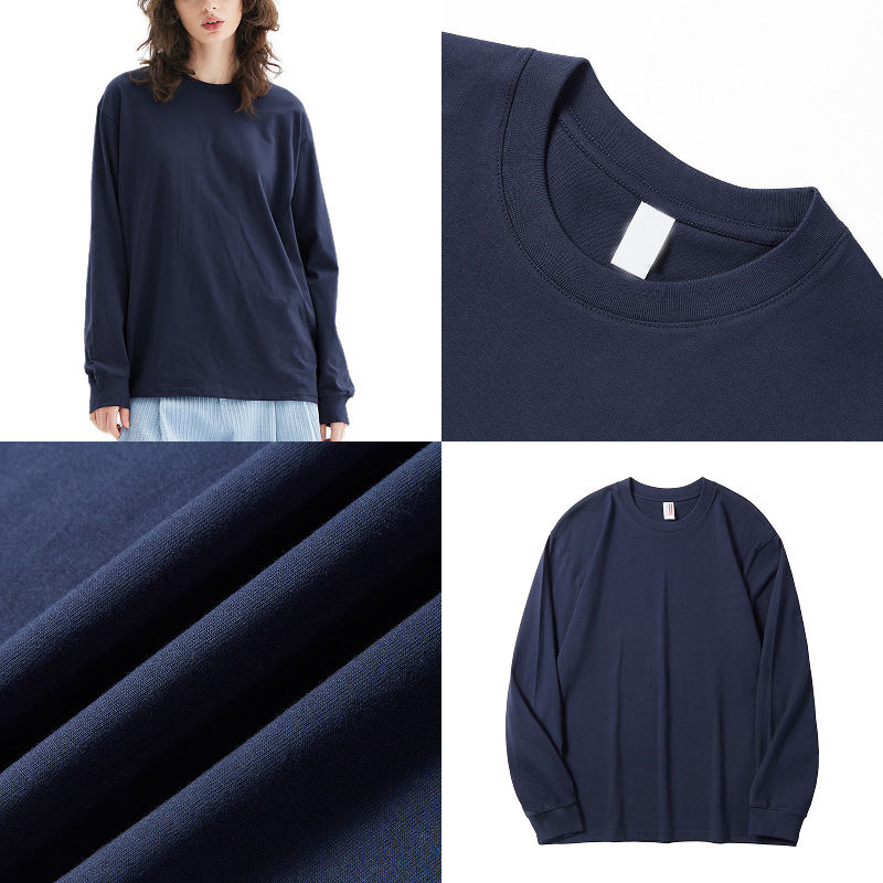 เสื้อยืดคอกลมแขนยาวทรงหลวม ยูนิเซ็กซ์ 240GSM คุณภาพสูง ขายส่ง ผ้าฝ้าย 100% รับสกรีนโลโก้ พิมพ์ลายดิจิตอล สำหรับผู้ชาย