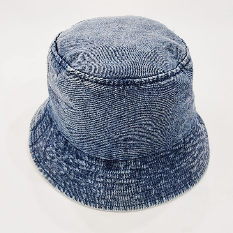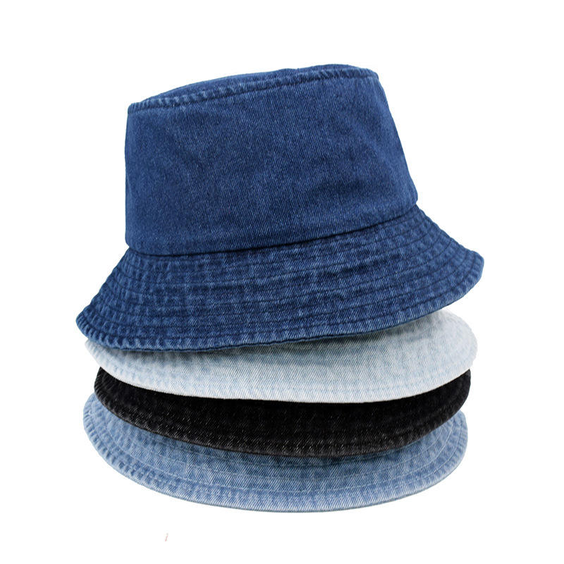 หมวกทรงถังปักลาย3D สำหรับทุกเพศพร้อมลายทางคุณภาพสูงผ้าคอตตอนฟอกสีผ้าเดนิมที่ระบายอากาศได้สไตล์ฟิชแมนผู้ใหญ่