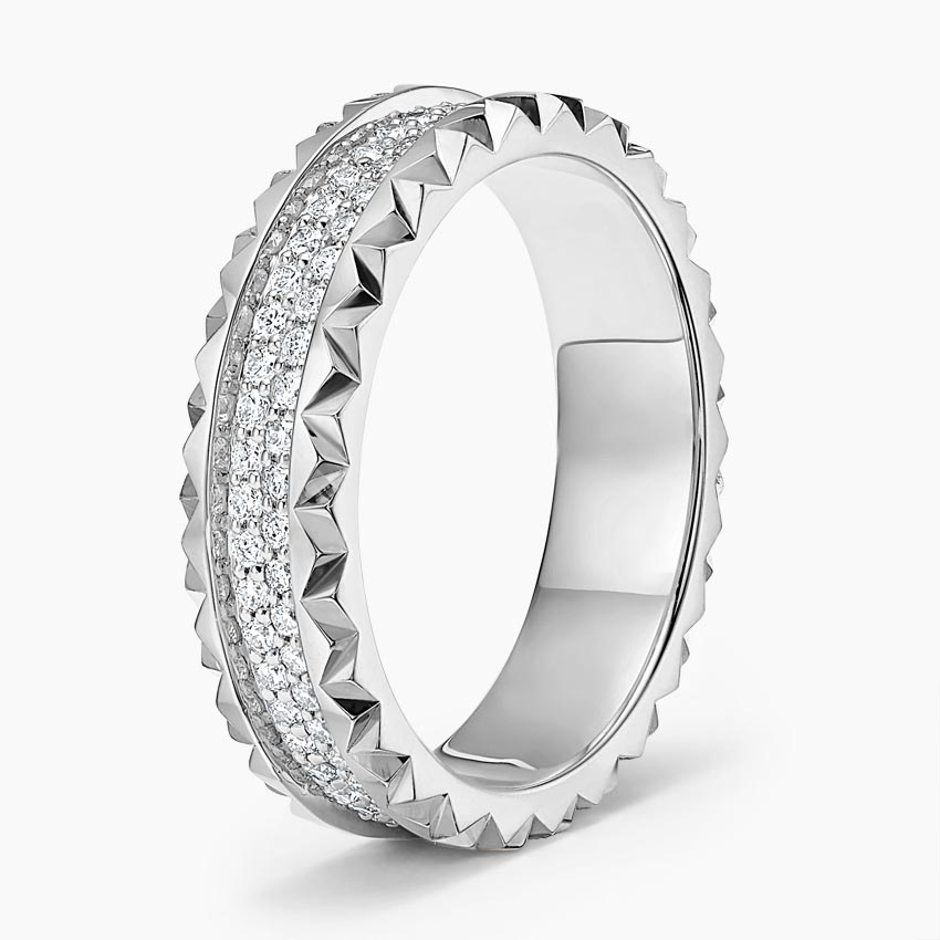 แหวนเงินแท้ 925 ประดับเพชรโมอิสซาไนต์ ดีไซน์ทันสมัย สำหรับงานแต่งงาน ขอบทรงปิรามิด ประดับเพชรแบบสามแถว สไตล์คลาสสิก เหมาะสำหรับงานปาร์ตี้