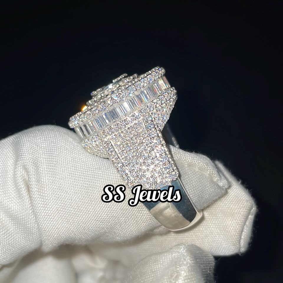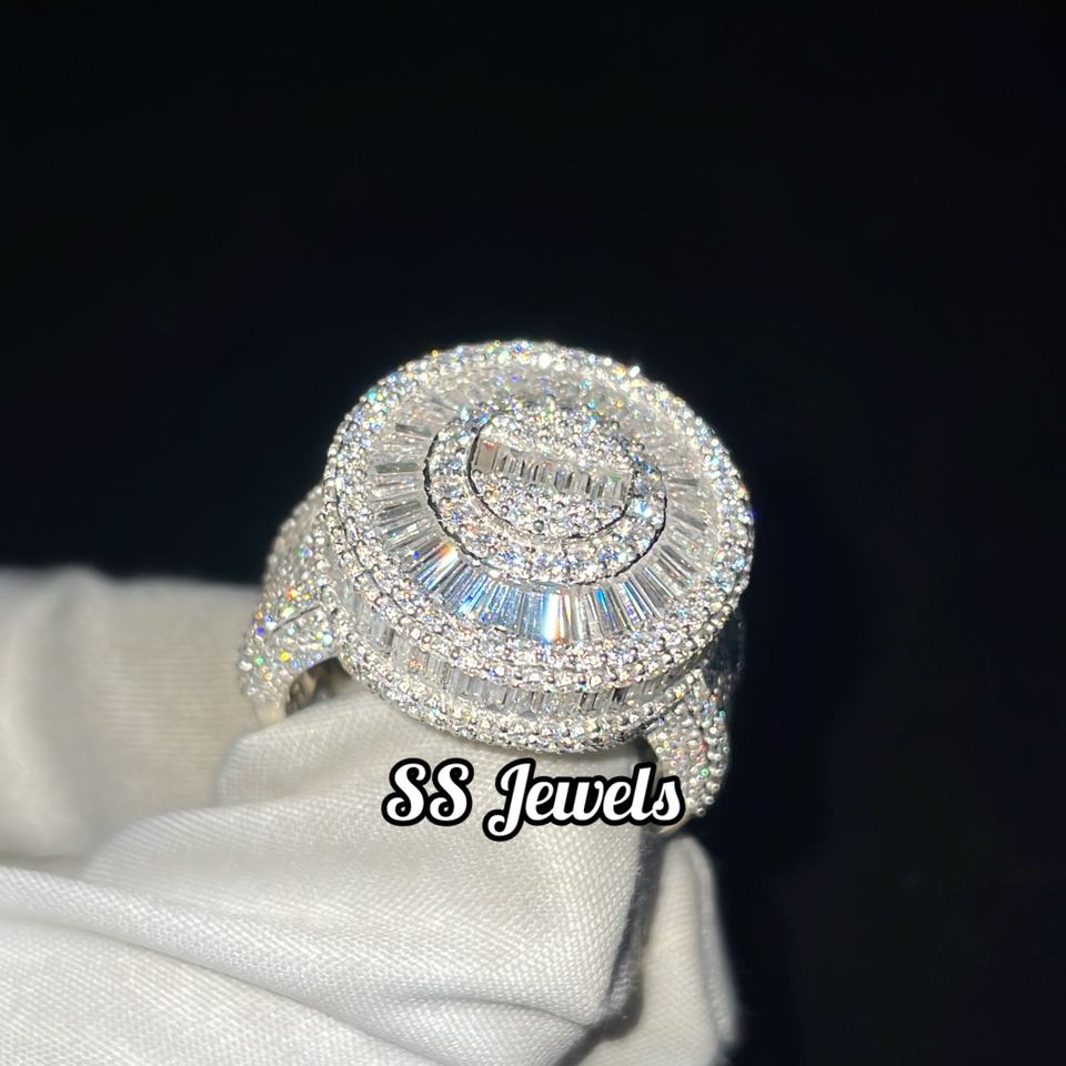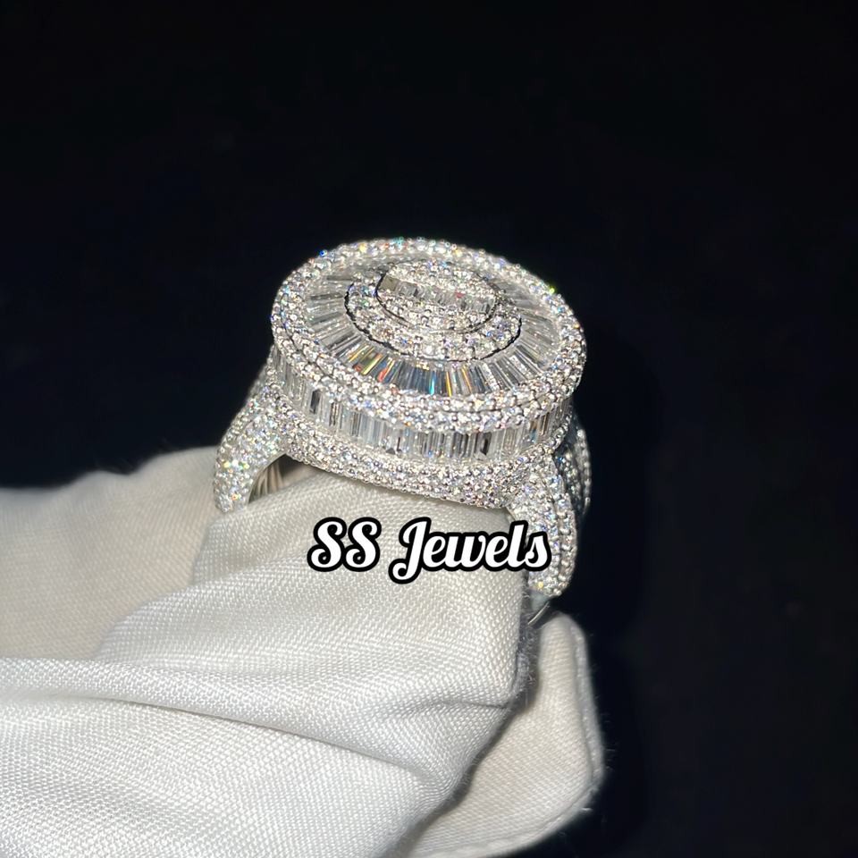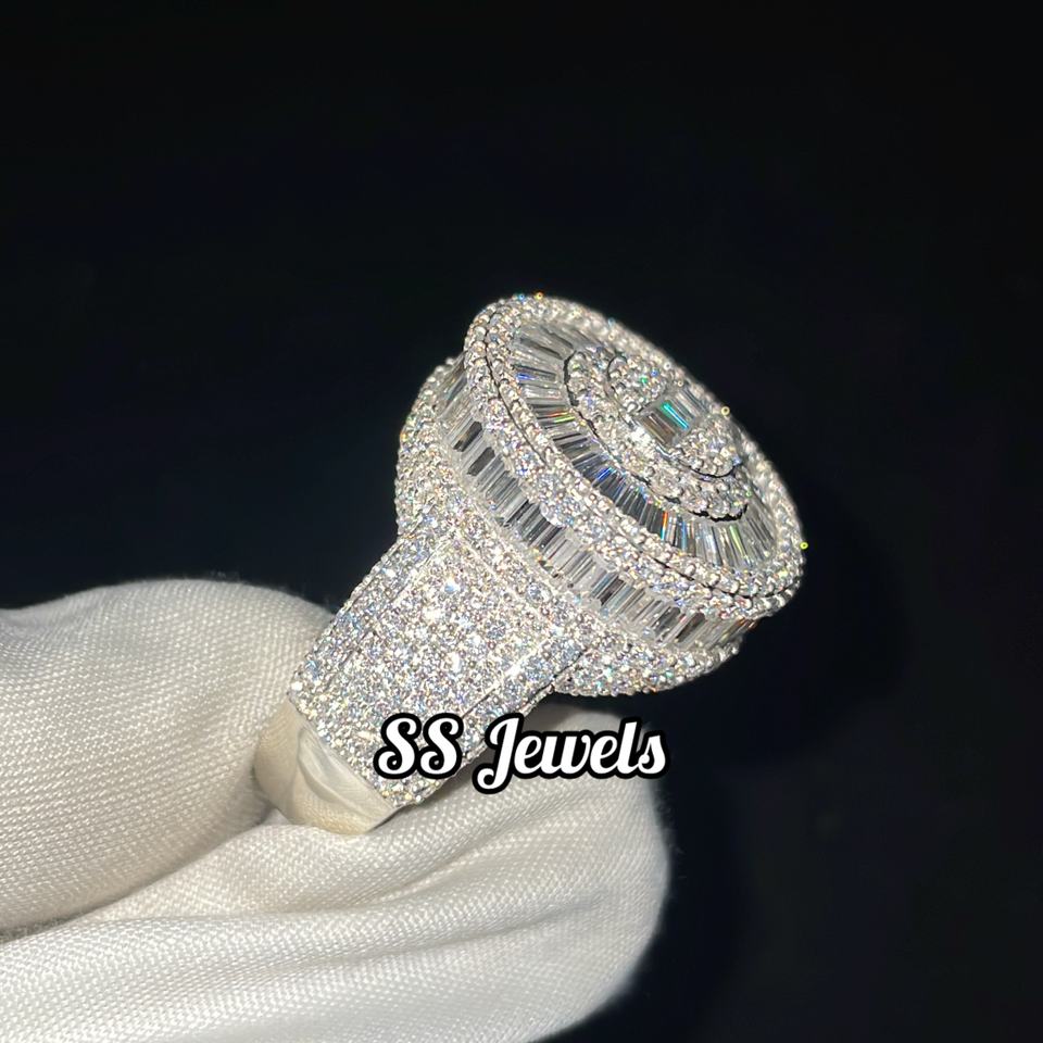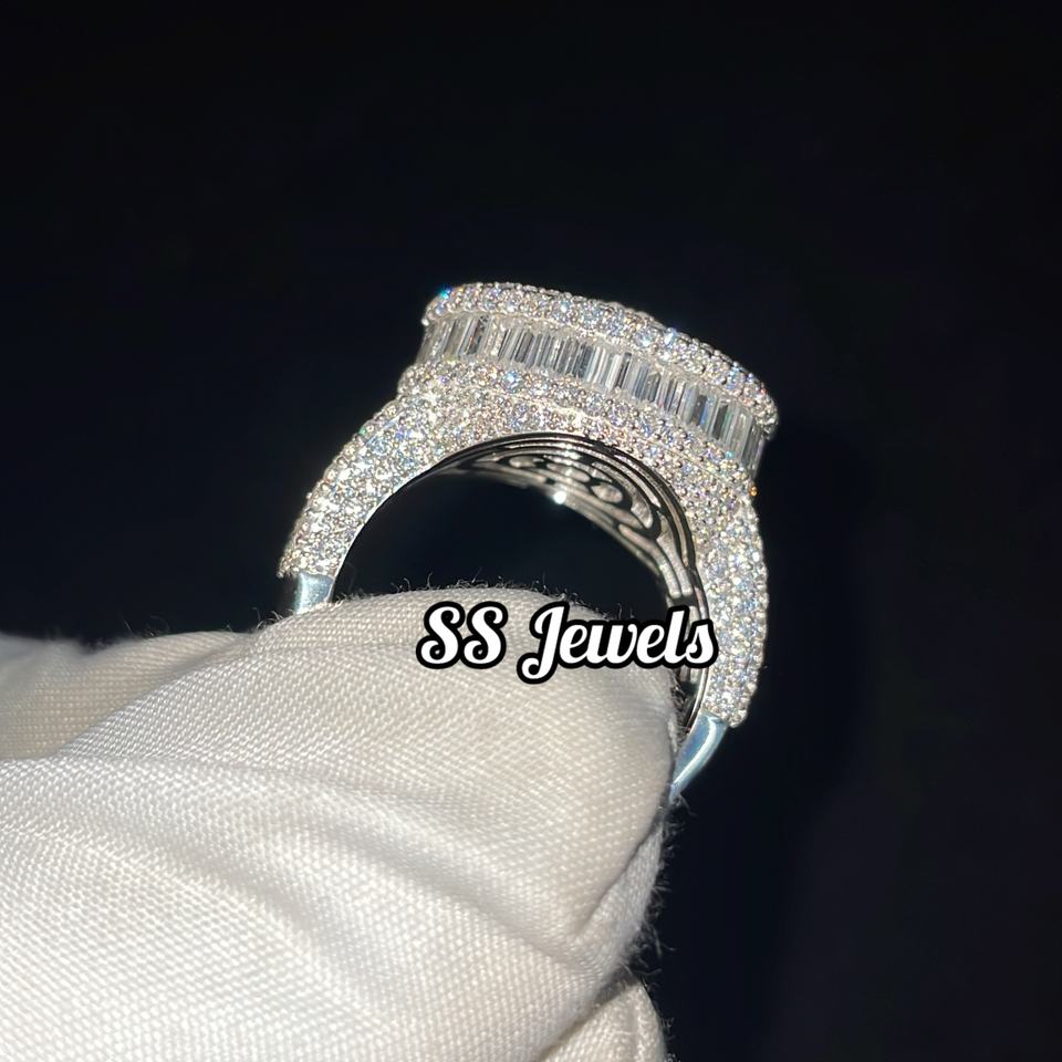 Unisex 925 Silver Rhodium Plated Hip Hop Moissanite VVS Iced Bustdown Baguette Channel Setting SS Jewels 15g Perfect Anniversary