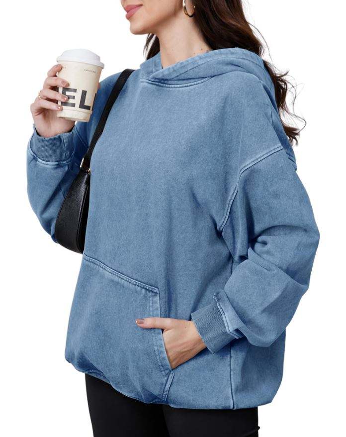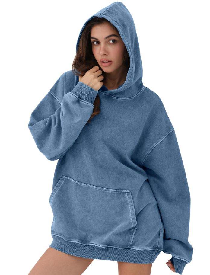 เสื้อฮู้ดยีนส์ยูนิเซ็กซ์สไตล์วินเทจฟอกสีแบบแอซิดวอช หนานุ่ม พิมพ์ลายดิจิทัล ทรงปกติ สำหรับคู่รัก ปี 2025
