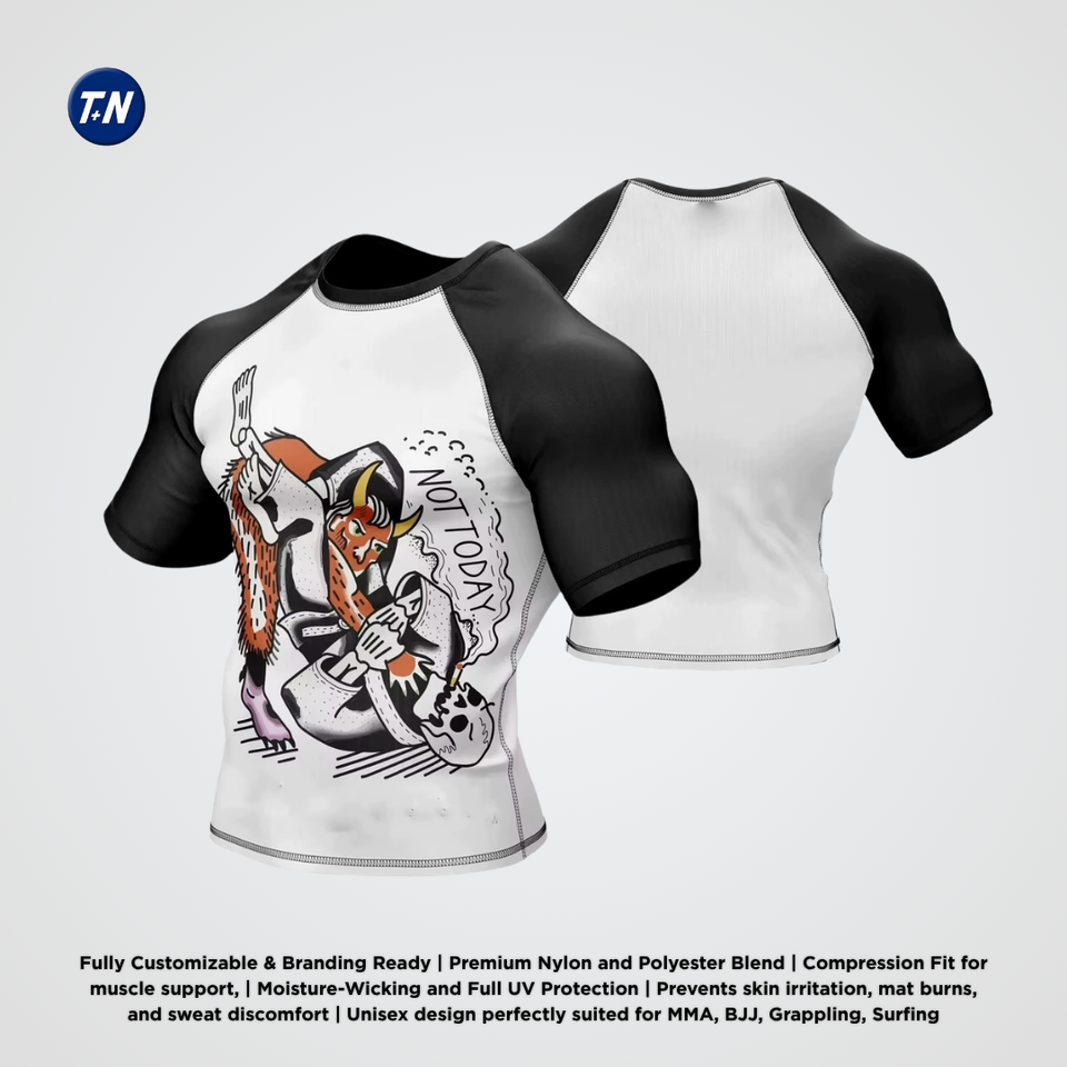 เสื้อรัดกล้ามเนื้อสำหรับผู้ใหญ่แบบยูนิเซ็กซ์สำหรับ MMA ป้องกันรังสียูวี ป้องกันเชื้อโรค พิมพ์ลายด้วยเทคนิคการถ่ายเทความร้อน ผลิตจากโพลีเอสเตอร์/สแปนเด็กซ์