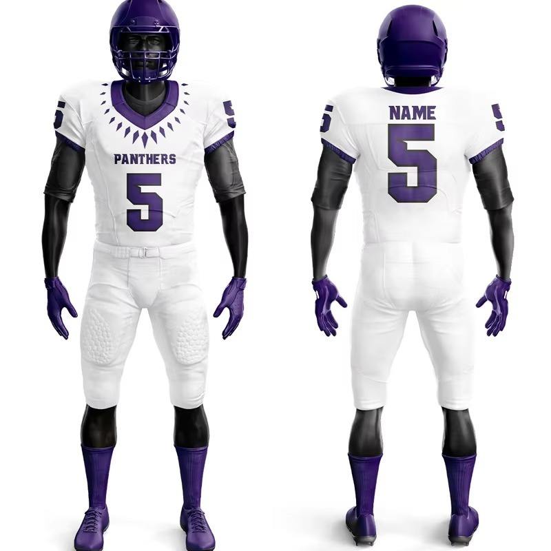 ชุดเสื้อฟุตบอลอเมริกันสำหรับผู้ใหญ่แบบยูนิเซ็กซ์ แบบกำหนดเองได้ ลายไล่เฉดสี แขนสั้น ชุดยูนิฟอร์ม เทคนิคการพิมพ์แบบซับลิเมชั่น ผ้าโพลีเอสเตอร์ 100%