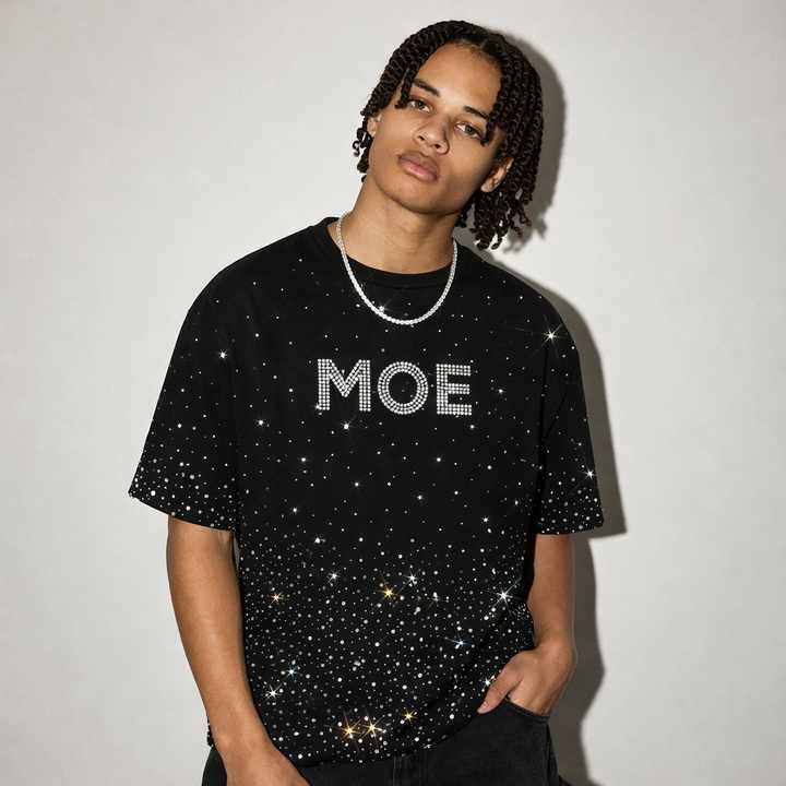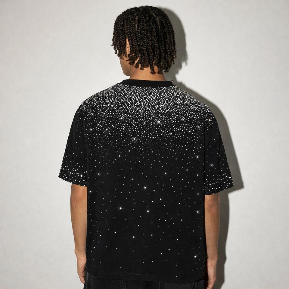 เสื้อยืดผู้ชายแบบ unisex ประดับคริสตัลวิบวับทั้งตัว สไตล์สตรีทแวร์ ทรงโอเวอร์ไซส์ รับทำโลโก้ตามสั่ง ผู้ผลิต OEM จากสหรัฐอเมริกา