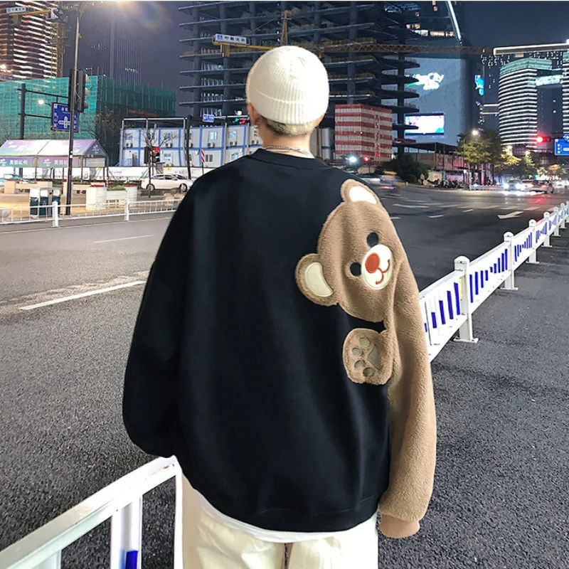 เสื้อสเวตเชิ้ตลายการ์ตูนหมีสำหรับฤดูใบไม้ร่วงและฤดูใบไม้ผลิ แบบ unisex สำหรับเด็กผู้หญิงและเด็กผู้ชาย คอกลม ทรงหลวม สวมใส่สบาย แขนยาว มีฮู้ด