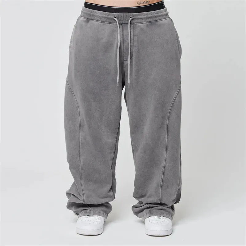 กางเกงวิ่งขายาวผ้าฝ้ายเฮฟวี่เวทใส่ได้ทั้งชายและหญิงกางเกงวิ่งขากว้างพิมพ์ลายดิจิตอลโลโก้ตามสั่ง