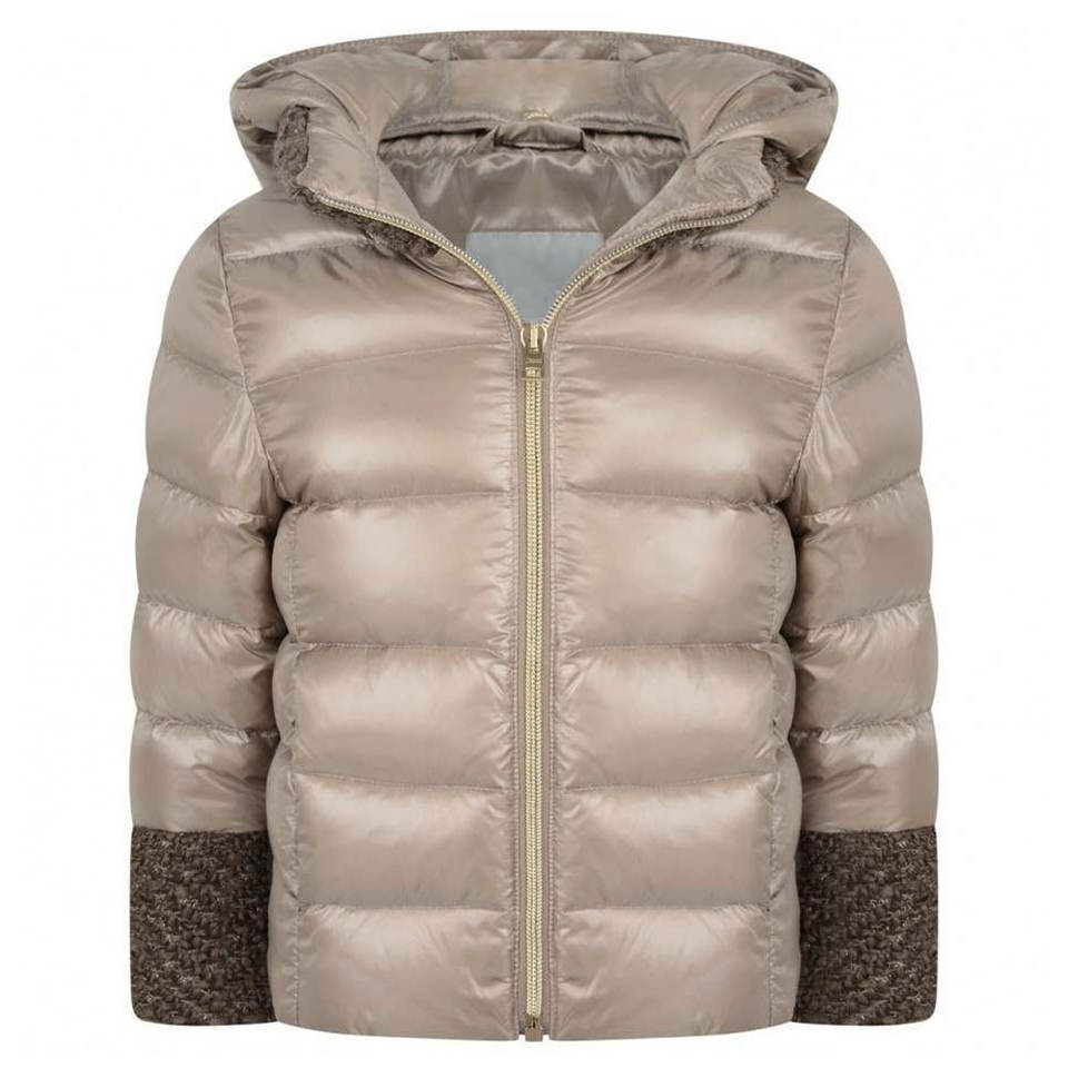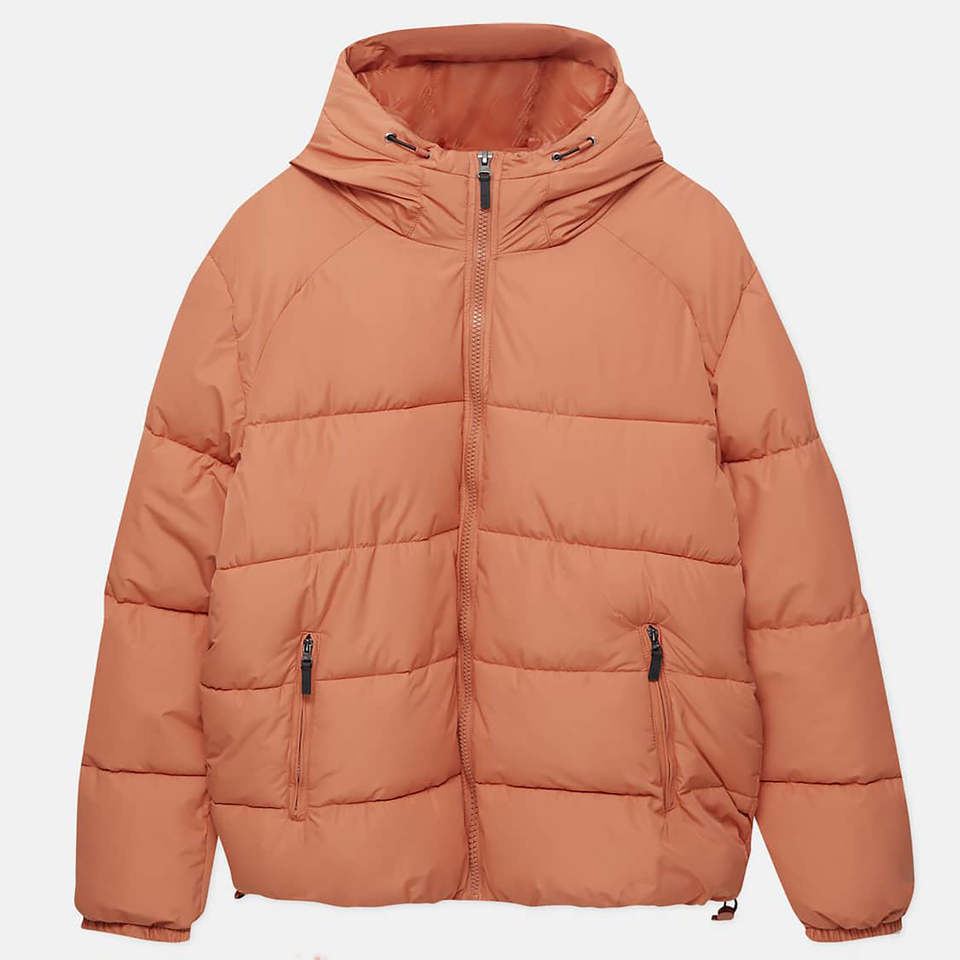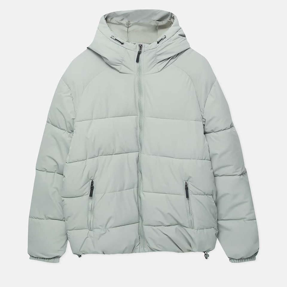 เสื้อแจ็คเก็ตพัฟเฟอร์แบบมีฮู้ด สีเบจ สำหรับทุกเพศ ผ้าแคนวาสเงาบุใยฉนวนกันความร้อน ซิปกันน้ำ ปลายแขนถักแบบตัดสี สำหรับฤดูหนาว